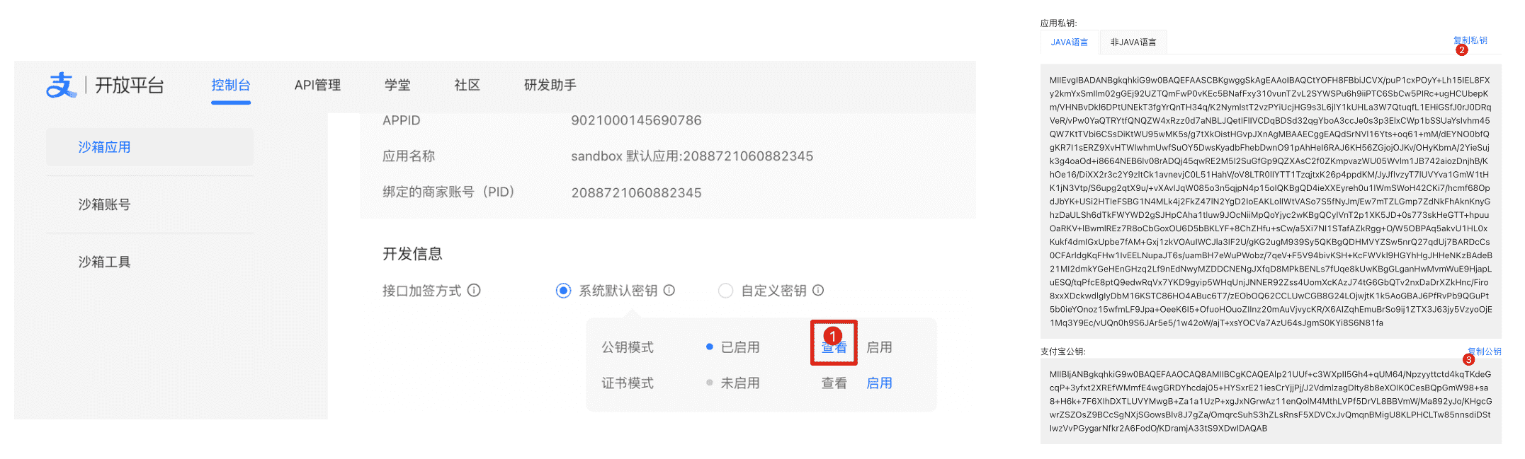 一定要注意,这里配置的是应用私钥、支付宝公钥,不是应用公钥